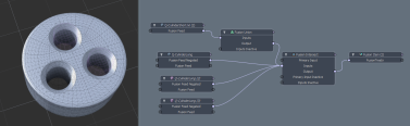 The image below shows a simple mesh that is constructed by intersecting negated cylinders (one original and two instances) with a single mesh.