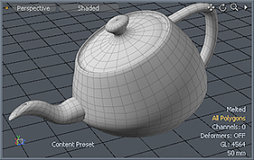 Morph maps offer a means of saving alternate, non-destructive deformations for any model. You can animate individual morph map deformations over time. For example, this provides the ability to animate a facial expression. To animate any morph map, you must first apply a morph deformer to the model. Modo supports two varieties of morph maps: relative and absolute. Relative morph maps offset a particular vertex relative to its current position. An absolute morph map positions a vertex to a specific absolute position. Relative Vertex Maps are the more common variety. The main benefit to working with morph maps in Modo is that if you make any topology changes to a specific morph map, Modo applies those changes to all the associated maps.
