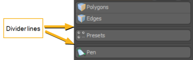 You can add horizontal divider lines between the buttons in your workbench. To do this, click the Additional Controls