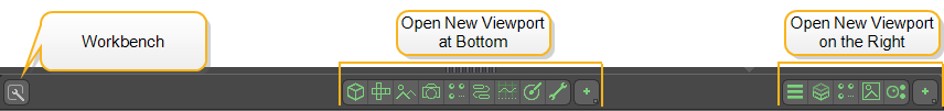 When expanded, additional controls appear that allow you to open more viewports. These areas are also equipped with workbenches, so you can add additional tool controls here. For more information, see Form Workbenches.