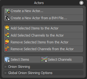 • Select Channels - Selects all the animated channels related to all the items in the actor.