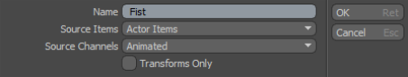 • Add Selected Channels to the Actor - Adds additional channels to the current actor. To use, first select the channels to add and then click this button. Modo adds the selected channels to the actor.
