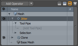 | 9. | On the right panel, select the top mesh item, click Add Operator, and double-click Mesh Operations > Deform > Jitter. |