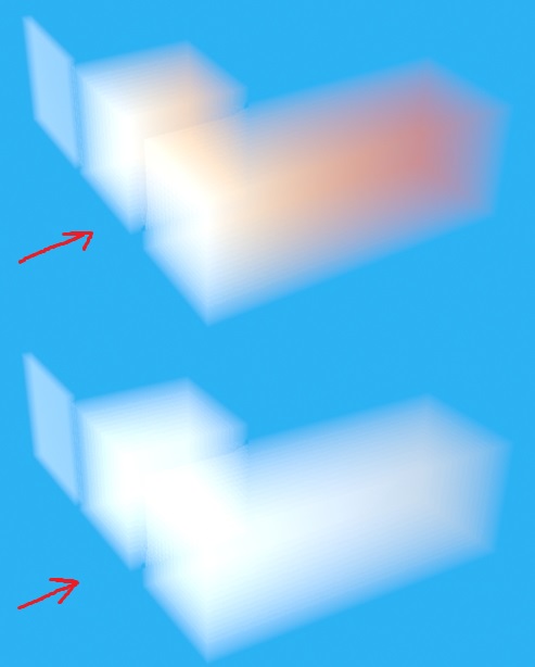 When light goes into or through volumetrics, for example fog or smoke, light towards the red end of the spectrum makes it through a lot easier than other colors, so the non-red parts of the light gets filtered out the deeper into a volume the light goes. Rather than make light tint automatically, like it does in nature, the Red Shift channel lets you control how much this happens.