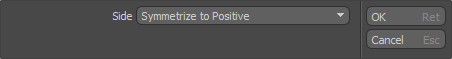 • Symmetrize - attempts to repair symmetry issues in a model, bringing models back into exact symmetrical form. Clicking Symmetrize opens the Symmetrize Vertices dialog, where you can choose the side to mirror across, either positive or negative, based on the values in the defined symmetry axis (values are based on either side of the axis center location, either positive or negative).