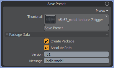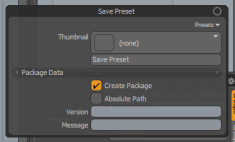 Note: The type of preset you can create will depend on what you have selected in your Item or Shader list. For example, if you have a mesh selected the Save as Mesh Preset will be the type of preset available to you.