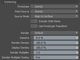 | 2. | In the Instancing section of the Replicator's properties, choose the appropriate geometry in the Point Source and Prototype selectors. |