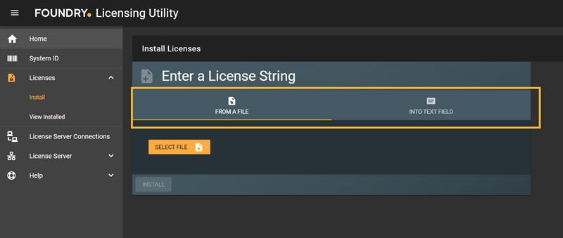 2.   Once you have your generated license key, you can then use the FLU to install your license automatically. To do this, go to Licenses > Install.