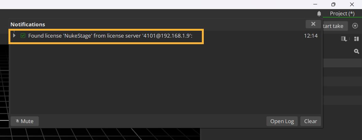 10.   Once the RenderNode obtains a license from the server, you will see a success message in the Notifications panel of Nuke Stage Editor.