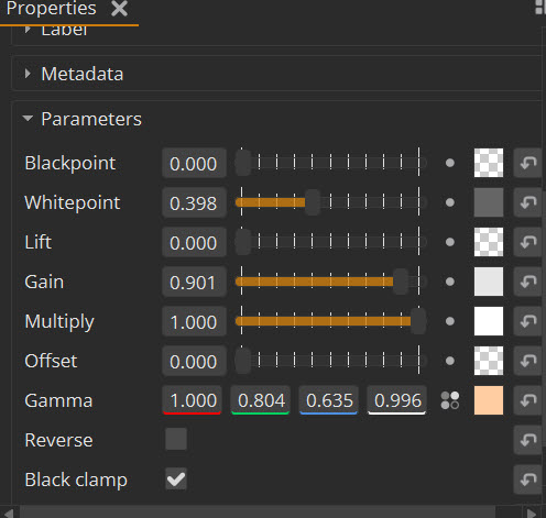 Edit individual elements of a scene on the texture graph using the Grade node- using the grade panel to change the color or the properties panel for whitepoint lift etc.