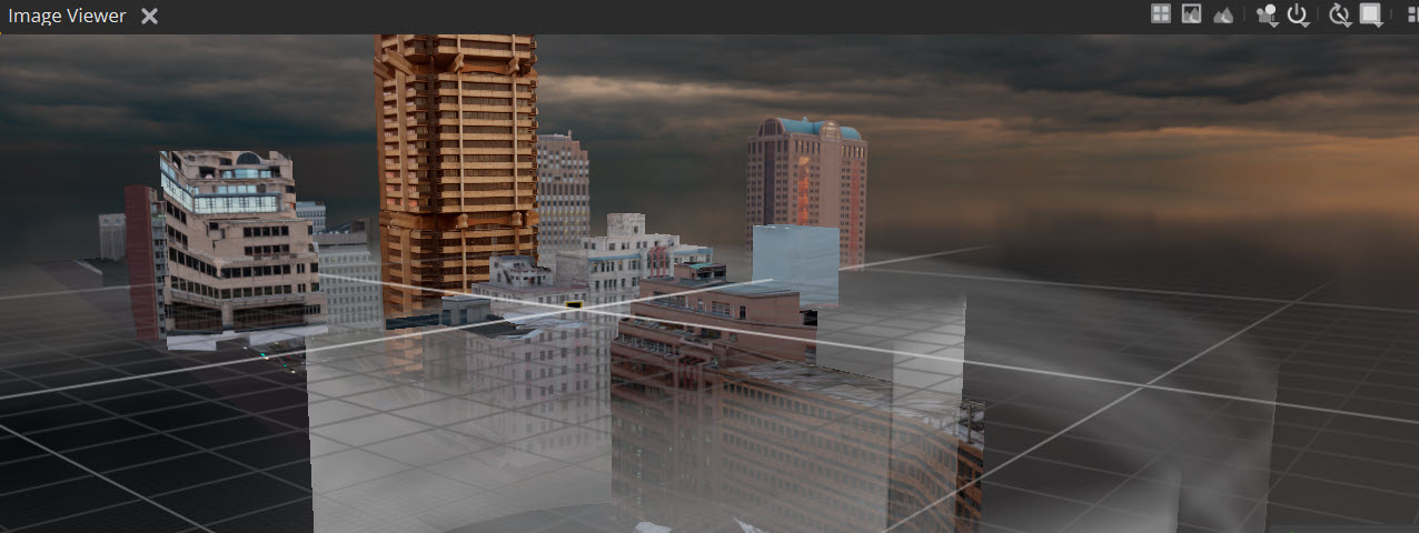 In this example, we will be using the sample cityscape asset (accessible from the Nuke Stage download page, in the folder nuke_stage_sample_projection_mapping.zip) to explore how you can make real-time edits to 2D, 2.5D and 3D scenes in Nuke Stage.
