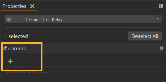| 2. | From the Properties panel you can then add cameras using the + button. |