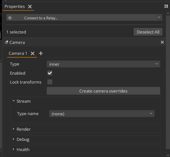 • Gamepad - Control camera from a gamepad, support includes Xbox, PS5 and other gamepads which can connect to a Windows machine. Note that the joystick must be connected to the machine running the Relay process.