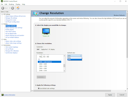 | 1. | Open the NVIDIA Control Panel, and navigate to Display > Change resolution. |