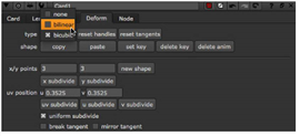 • To have the original tangents adjusted to create a more uniform subdivision when you are using x subdivide, y subdivide, or uv subdivide, check uniform subdivision. If you do not check this, Nuke maintains the original tangents.
