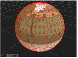 By default, a sphere has 30 rows and 30 columns. You can, however, increase or decrease either number as appropriate. For example, the figure below shows a sphere whose geometric resolution has been decreased to 2 rows and 4 columns (making it, in effect, an octahedron).