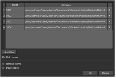 | 6. | Check the group nodes checkbox to place the Read nodes for each individual patch into a Group node. The name of the Group node is based on the name of the image or sequence. |