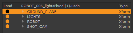 Light, camera, and axis items are loaded using the relevant native Nuke 3D nodes, Light, Camera and Axis. If there is only one item in the USD file, it loads automatically.