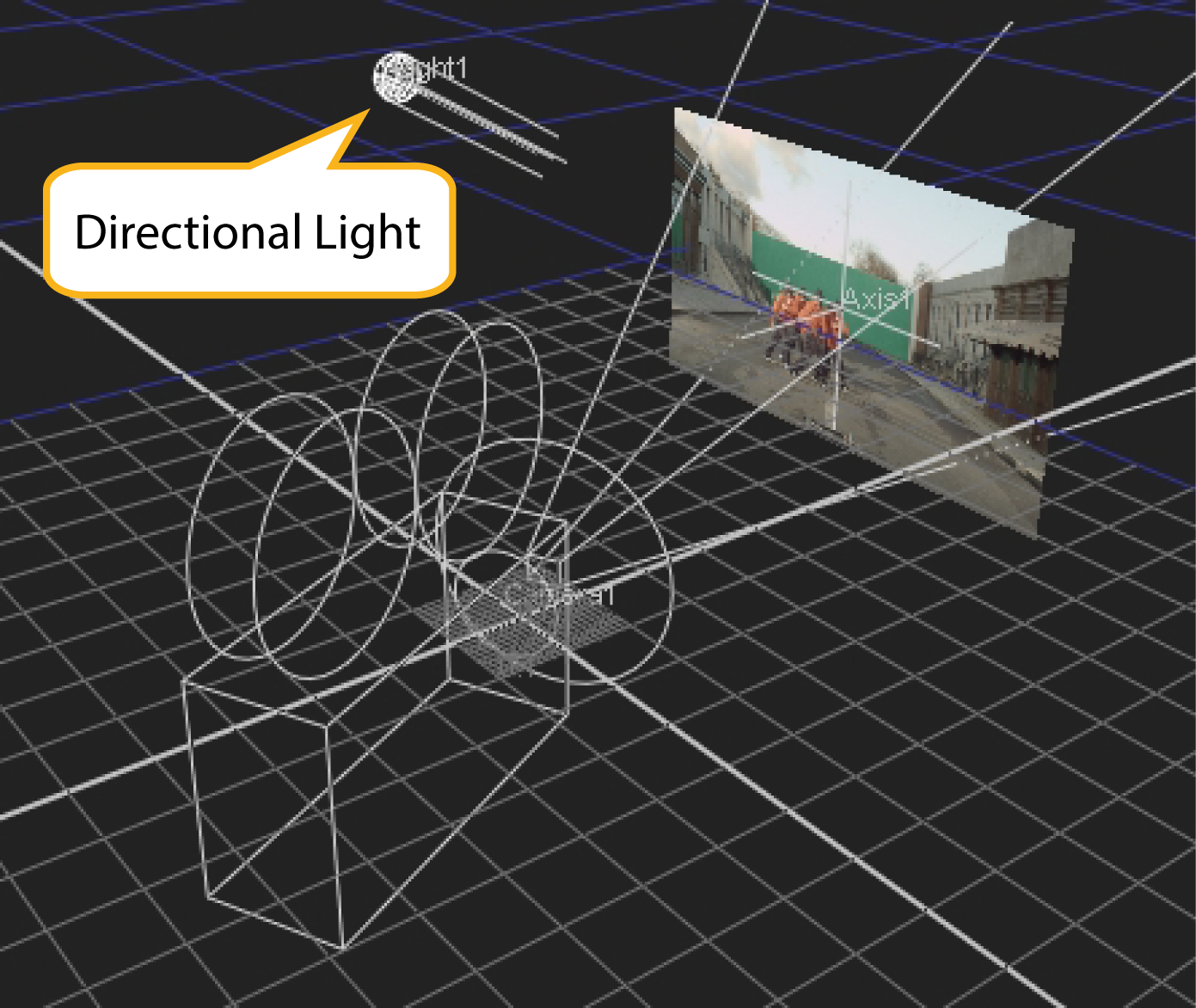 A direct light is a light that emits parallel light in one direction. It appears to illuminate all objects with equal intensity, as if it was coming from a far away source. Being at an infinite distance from the objects, direct light has orientation, but no position. A real world example of a direct light is the sun. You can use direct light to simulate sunlight and moonlight, for example.