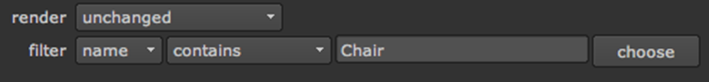This can be useful when you have some structure to your object names. For example, if you have objects like /Root/Chair/Seat, /Root/Chair/Back, and /Root/Table, you can select contains and set the filter name field to Chair to apply the material to all parts of the chair while leaving the table alone.