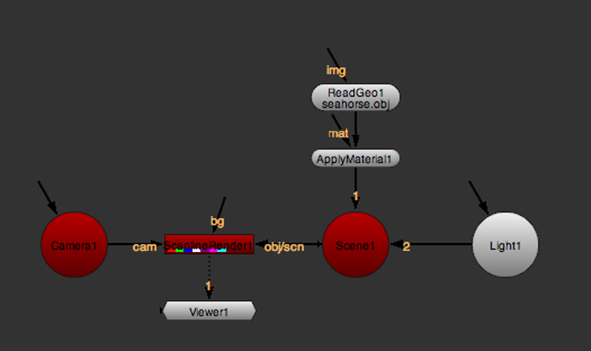 | 2. | Connect the unnamed input of the ApplyMaterial node to your geometry (for example, a Sphere, ReadGeo, or ModelBuilder node). |