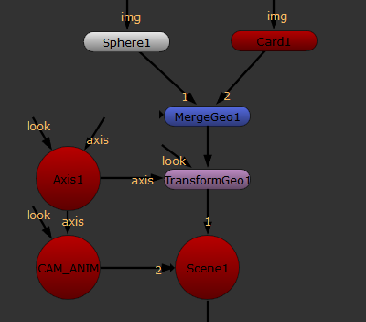 | 2. | To create the parent relationships, connect the Axis node to all object nodes you wish to control with the Axis transformation controls. |
