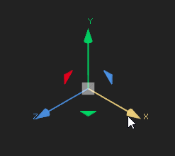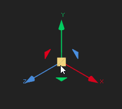 Transform handles appear when a 3D object with transform capabilities is loaded into the Properties panel. The colors of the handles correspond to the axes available in 3D space: red transforms the x-axis, green transforms the y-axis, and blue transforms the z-axis.