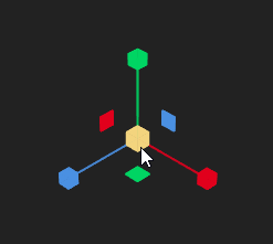 • Drag the center gray square to move it on any axes free-style.