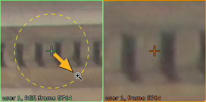 • Current frame (orange) - the playhead position. Use this window to adjust the tracking anchor on the current frame by comparing it to the reference frame.