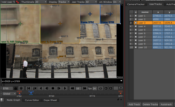 Tip: Generally, you would only manually create User Tracks in stills. Nuke's Tracker node can create reliable tracks for continuous sequences which you can then import as User Tracks.