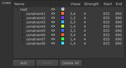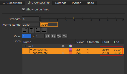 | 5. | Select the constraint in Properties > Line Constraints > Lines table and set the Strength and frame range controls. |