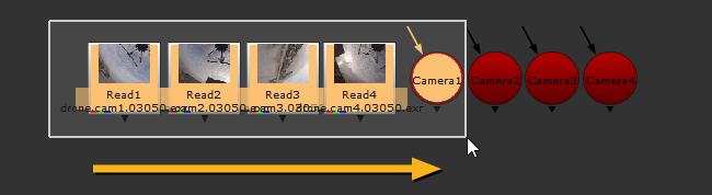 | 2. | Select all the Read nodes and Camera nodes in order to ensure that the inputs are connected up correctly. |