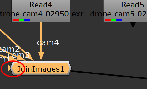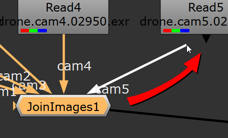 The additional image and camera inputs are added to the left-hand side of the JoinImages and JoinCameras nodes, drag-and-drop them to connect the inputs as normal.