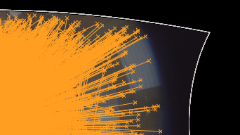When the rig is solved, you can also view matches between overlapping cameras in latlong space by switching the Cam Projection dropdown to Latlong.