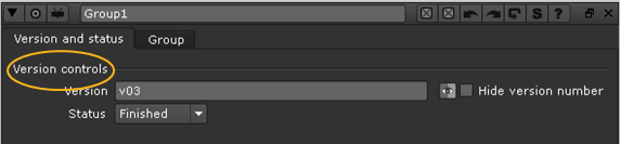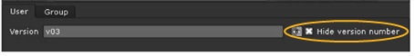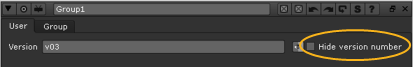 From now on, whenever Hide version number is checked in the Group controls, the Text1 node is disabled and you cannot see the version number it would otherwise create.