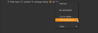 | 4. | On the Group1 Node Graph tab, double-click the Switch1 node to open its controls. Right-click on the which field and select Add expression. |
