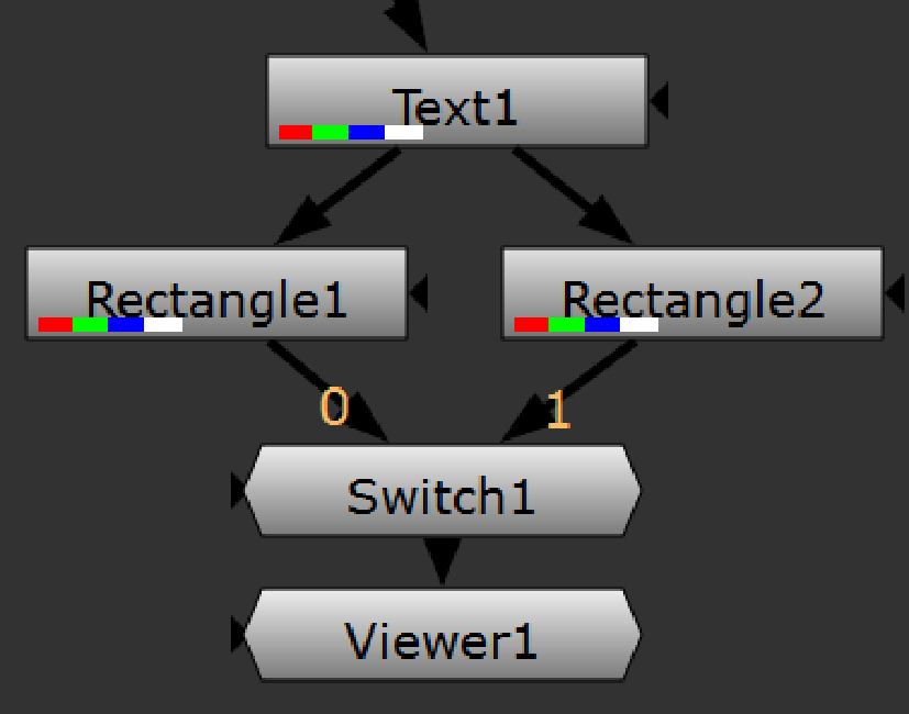 | 8. | Select the Text1, Rectangle1, Rectangle2 and Switch1 nodes and press Ctrl/Cmd+G to group them. This group is the gizmo we add controls to in the following examples. |
