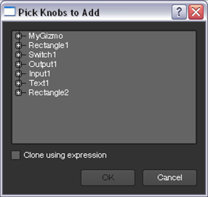 | 2. | To pick a control you want to give the users control of, click on the Pick button. This opens a dialog that lists all the nodes that the group contains. |