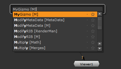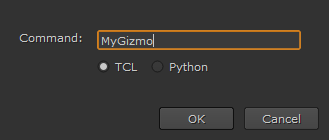 • pressing X on the Node Graph or Properties panel and entering the gizmo name(without the extension)as a TCL command in the dialog that opens,