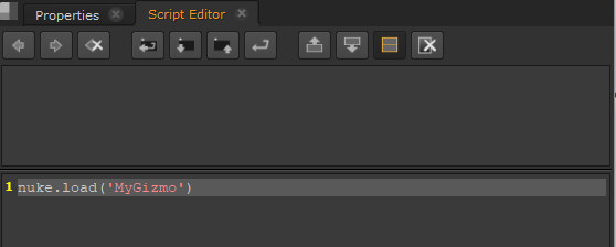 • opening the Script Editor and entering nuke.load('gizmo name') where gizmo name is the name of the gizmo without the extension, or
