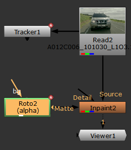 | 3. | Add an Inpaint node and set the Fill Region to either Source Alpha or Matte Alpha, depending on how your Roto node is connected. |