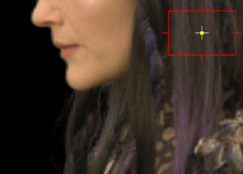 Selecting the hair color despills the blue pixels, producing a better matte. |