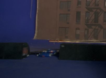 In production situations, you may not always get a uniform color across your blue or green screen background, which can make pulling a key difficult. ChromaKeyer allows you to key different regions of the screen additively by picking shades of blue or green in multiple ChromaKeyer nodes. The example image shows a poor background containing different shades of blue as a screen color.