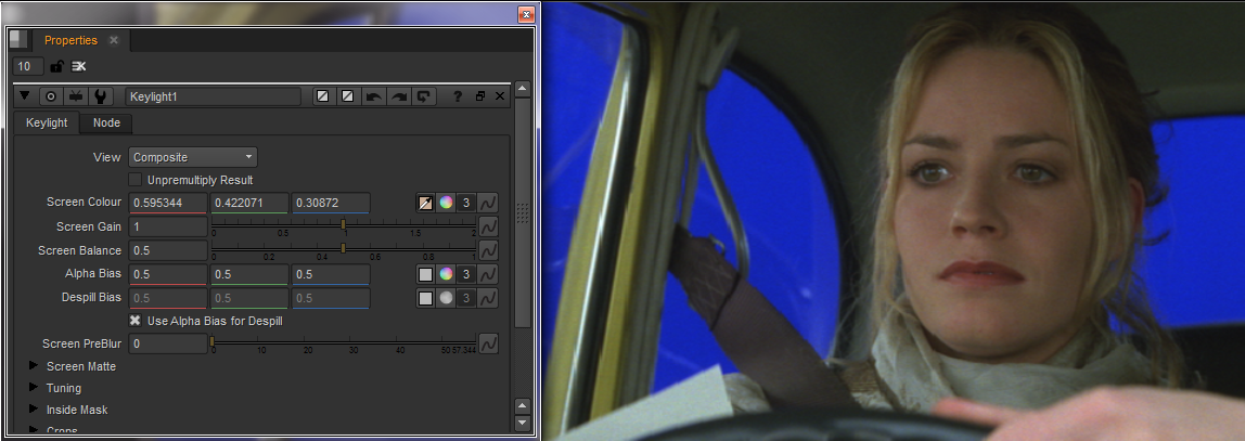 This section explains how to use the blue/green screen keyer, Keylight, in Nuke.