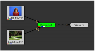| 2. | Connect a foreground image to the Primatte node’s fg input and a background image to the bg input. |