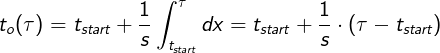 The start frame t_start is the same for both the input and output sequence. If the speed parameter s is not animated, and therefore s is a constant, we get: