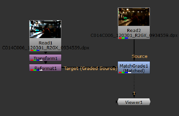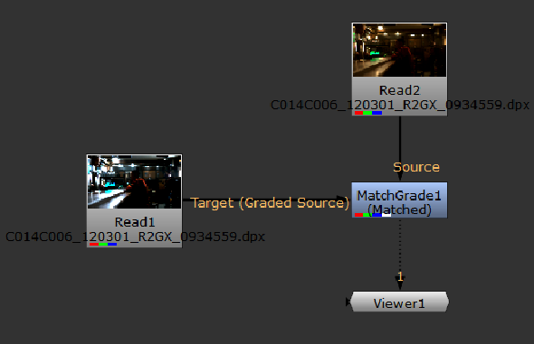 • Connect a Viewer to the output of MatchGrade.