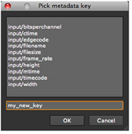 | 4. | In the field at the bottom of the dialog, enter a name for the new key you want to add to the metadata. Click OK. |
