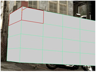 • To carve the selected faces, right-click on them and select carve. A colored border appears around the Viewer window to indicate that the action is in progress. Click on an edge or vertex to begin a carve. All of the surrounding faces are highlighted in red. Click anywhere inside a highlighted face, or on an edge or vertex of a highlighted face, to carve an edge between the previous vertex and the place you just clicked.
