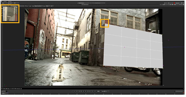 | 5. | Go to a different frame and move one of the blue vertices to match its new location in the src footage. When you do so, a purple line appears. The correct location for the vertex on the current frame should lie somewhere on this line; however, you can drag the vertex away from the line if necessary. |